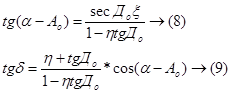 Тогда, если обозначить координаты оптического центра О через Ао,До, то в единицах фокусного расстояния (F=1) в соответствии с рисунком, получим: