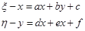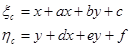 Связь между идеальными координатами спутника (ξ и η) и измеренными на снимке координатами ИСЗ (x, y).