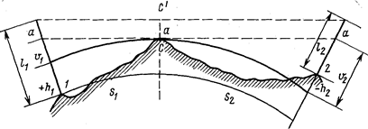 На пунктах геодезической сети строят геодезические знаки такой высоты, чтобы визирные лучи при угловых и линейных измерениях проходили по каждому направлению на заданной минимальной высоте над препятствием, не касаясь его. Расчет высот знаков наиболее часто выполняют по формулам В. Н. Шишкина как наиболее простым. Задачу решают в два приближения. Сначала определяют приближенные высоты знаков 1’1 и l’2 для каждой пары смежных пунктов, а затем корректируют их и находят окончательные значения высот 11 и l2.