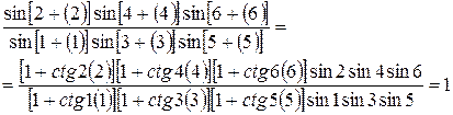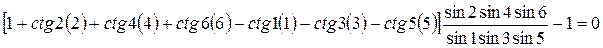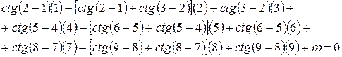 Полюсное условное уравнение (2) получено для уравнивания углов. При уравнивании направлений поправки в углы выражают через поправки в направления. Учитывая, что угол равен разности направлений, на рис.2 имеем 1 = 2 – 1, 2 = 6 – 5 и т.д.; значение -ctg1(1) = ctg(2-1)(1) – ctg(2-1)(2) и т.п. В результате, после приведения подобных членов при одноименных поправках имеем