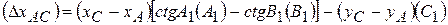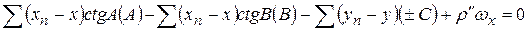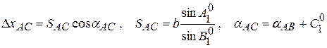 Для получения уравнения абсцисс выразим поправки (Δx) через поправки в измеренные углы. Учитывая