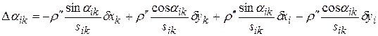 где δzi – поправка в ориентирующий угол z0 на i -том пункте, ξi , ηi, ξk, ηk – поправки в дециметрах в приближенные координаты xi0, yi0; xk0, yk0 пунктов i и k, т.е. ξ = 10δx, η = δy; δx, δy – поправки в метрах.