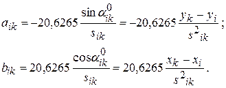 Следует заметить, что ошибки, допущенные при составлении уравнений поправок, обнаруживаются только в конце вычислений, поэтому определение aik, bik, lik нужно контролировать.