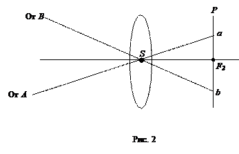 Законы геометрической оптики позволяют сложную оптическую систему идеального объектива заменить упрощенной моделью (линзой), сечение которой плоскостью, проходящей через главную оптическую ось, показано на рис. 1.