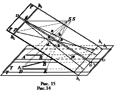 Пусть А, В, С и D (рис. 9) точки местности, а S – центр проекции. Тогда точки пересечения а, в, с, d плоскости Р с проектирующими лучами AS, BS, CS и DS есть центральные проекции соответствующих точек местности. Такую же центральную проекцию можно построить и в том случае, если плоскость проекции Р¢ провести по другую сторону от центра проектирования и на том же расстоянии от него. Действительно, если это сделать, то получим точки а¢, в¢, с¢ и d¢, причем согласно условию