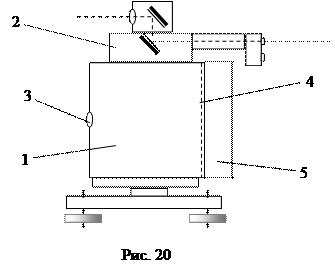 Фототеодолиты бывают различной конструкции и отличаются по формату кадра, фокусному расстоянию и другим характеристикам. В СССР выпускались фототеодолиты «Геодезия», но наибольшее распространение на горных предприятиях страны получил фототеодолитный комплект фирмы «Карл Цейсс Йена». Фототеодолит Photheo 19/1318 этой фирмы (рис. 20) предназначен для фотографирования местности на вертикально расположенные фотопластинки низкой чувствительности (то есть оптическая ось камеры горизонтальна). Цифры в названии прибора указывают приблизительную величину фокусного расстояния камеры и формат снимков в сантиметрах. Камера 1 имеет жесткую конструкцию. Изготовлена она из легкого сплава, На ней укреплено ориентирующее устройство 2, для приведения оптической оси в заданное положение, и уровни для горизонтирования прибора. Объектив 3 снабжен светофильтром ЖС-18, укреплен на суппорте и может перемещаться по его направляющим параллельно вертикальной оси камеры вверх и вниз от центрального положения с шагом 5 мм. В задней части в фокальной плоскости объектива расположена прикладная рамка 4, к которой в момент фотографирования с помощью прижимного устройства 5 прижимается фотопластинка. На прикладной рамке укреплены координатные метки с отверстиями. Они фиксируются на фотопластинке и служат для введения прямоугольной системы координат. Кроме того, в фокальной плоскости объектива установлены регистраторы и индикаторы, позволяющие зафиксировать на каждой фотопластинке величину фокусного расстояния камеры, номер снимка, положения объектива в момент экспозиции и направление j оптической оси (вид съемки). Номера фотоснимков от 0 до 99 можно устанавливать с помощью барабанчиков, расположенных на боковой поверхности камеры. Указатель вида съемки имеет 6 положений: