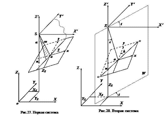 В первую систему ЭВО (рис. 27) входят координаты Xs, Ys, Zs точки фотографирования, а также углы поворота снимка α, ω и κ