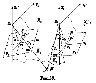 Вторая система элементов. За начало пространственной фотограмметрической системы координат принимается центр проекции левого снимка S 1. Координатные оси