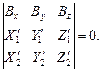 В координатной форме это условие выражается равенством нулю определителя третьего порядка, составленного из координат векторов: