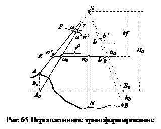 В результате на экране получим трансформированное изображение наклонного снимка. В соответствии с рис.65 его масштаб можно вычислить по формуле: