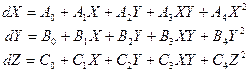 В представленной системе уравнений 15 коэффициентов. Имея не менее 5 планово-высотных опознаков, по невязкам на них можно коэффициенты вычислить, и затем использовать для введения поправок в координаты определяемых точек.