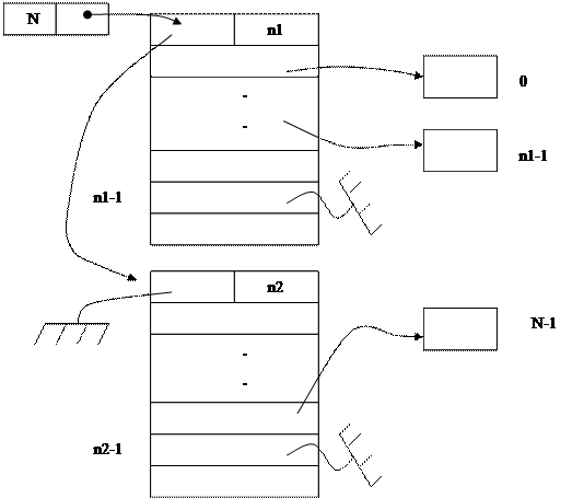 На рисунке показан пример с двумя сцепленными таблицами размещения. Данная организация файлов часто используется для таблиц большой размерности. И, наконец, для