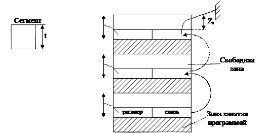 3) Большой излишек. Выбирают такую зону z, для которой величина (z)- t максимальной. Таким образом пытаются препятствовать дроблению памяти. При использовании любого алгоритма блок размером t размещается в зоне z и в дескриптор зоны заносится соответствующая информация. После освобождения зона вновь заносится в список и, если это возможно, объединяется с соседними зонами.