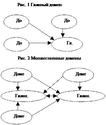 Эта модель работает наилучшим образом, когда компьютерные ресурсы сгруппированы по подразделениям или по территориальному принципу. Поскольку в модели множественных главных доменов каждый главный домен может поддерживать до 10000 пользователей, эта модель хороша для больших организаций.