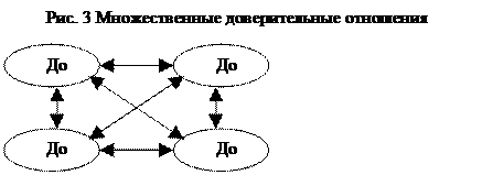 В модели множественных доверительных отношений каждый домен доверяет всем остальным доменам. При этом каждый домен может поддерживать до 10000 пользователей. Эта модель используется для компаний, не имеющих централизованного подразделения управления информационным сервисом.