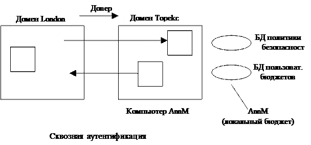 Сквозная аутентификация. Сквозная аутентификация имеет место в том случае, когда необходимо аутентифицировать пользовательский бюджет, но локальный компьютер не может сделать этого сам.