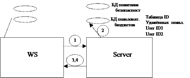2) Диспетчер бюджета безопасности сравнивает пользовательское имя и пароль с информацией, которая хранится в БД пользовательских бюджетов.