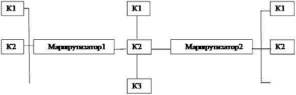 На рисунке б) показана более сложная конфигурация маршрутизации.
