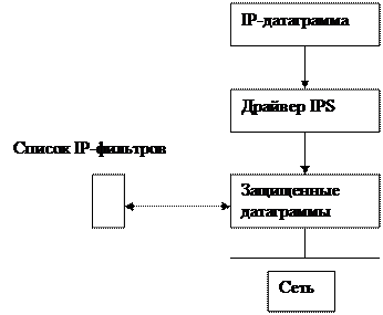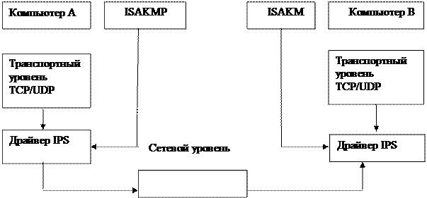 ü Драйвер безопасности IP(IPS-драйвер). Просматривает все пакеты на соответствие фильтру IP. Если он находит соответствие, то задерживает пакеты в очереди. Агент шифрует IP-пакеты и посылает их компьютеру-адресату.