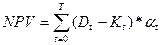 Чистая дисконтированная стоимость (NPV) определяется как разница между дисконтированными результатами проекта и дисконтированными затратами на его осуществление. Она рассчитывается по формуле: