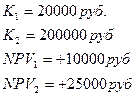 Если в качестве критерия оценки эффективности инвестиций использовать только NPV, то следует отдать предпочтение второму варианту (выше абсолютная величина NPV). Однако, во многих случаях более эффективным для инвестора может оказаться первый вариант, так как отдача с 1ед. инвестированного капитала здесь выше.