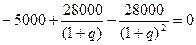 Рассмотрим следующий пример. Осуществляется инвестиционный проект по разработке полезных ископаемых. Его реализация потребует инвестиций в размере 5000$. Предполагается, что весь полезный объем ископаемого сырья добывается в первый год и продается за 28000$; во второй год проводятся только экологические работы по рекультивации почвы, стоимостью 28000$.