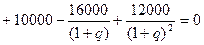Видно, что здесь невозможно определить показатель IRR Очевидно также, что данный проект не может быть эффективен во всей области изменения ставки q, хотя график однозначно свидетельствует об этом. Очевидно, что для оценки данного проекта должны привлекаться дополнительные критерии, либо использоваться дополнительные ограничения.