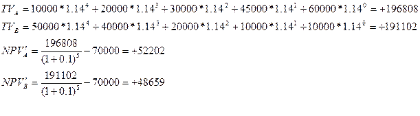Сначала рассчитаем модифицированные показатели для проектов А и В, при q=14%.