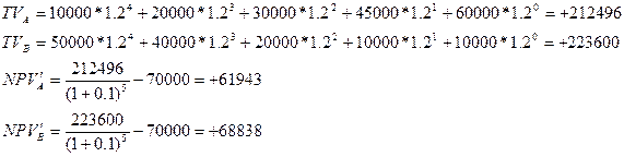 . Следовательно, более предпочтителен проект А. Для ставки q=20%,