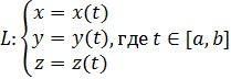 1) Касательный вектор. Рассмотрим кривую L в пространстве, заданную параметрическими уравнениями: