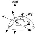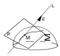 перпендикулярен касательному вектору ко кривой L в точке M.