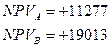 Определим значение показателя NPV при ставке q=10% для рассматриваемых проектов.