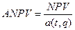Более корректное сравнение инвестиционных проектов с различными сроками жизни позволяет осуществлять метод эквивалентных аннуитетов. В основе этого метода лежит расчет величины аннуитированной чистой приведенной стоимости (ANPV). Это частное от деления величины NPV данного проекта на значение аннуитета по числу лет проекта и взятой для расчета NPV ставки дисконтирования.
