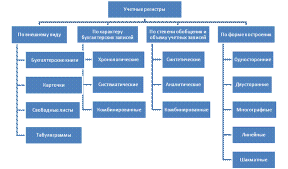 В практике ведения бухгалтерского учета применяются различные формы учетных регистров, но все их можно сгруппировать по следующим признакам: