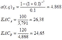 В данном случае критерием оценки будут эквивалентные годовые расходы (ЕАС), которые вычисляются по формуле: