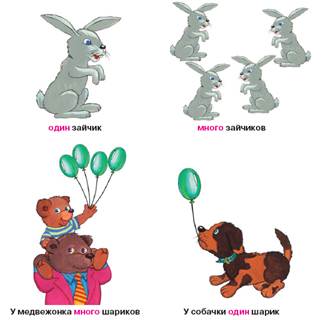 На одном столе ставится много мишек и один ёжик, а на другом — много ёжиков и один мишка. Ребёнок должен внимательно посмотреть на этих зверюшек и ответить, сколько на столе стоит мишек и сколько ёжиков. (То есть, чтобы одна и та же группа была представлена в одном случае в единственном числе, а в другом — во множественном).