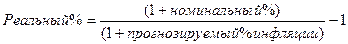 Для расчета реального процента (например, за кредит) можно воспользоваться следующей формулой (разновидность формулы Фишера):