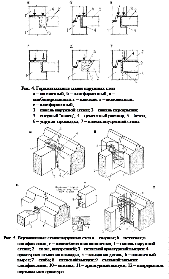 Вертикальные стыки панелей стен воспринимают усилия сдвига, растяжения и сжатия. По геометрической форме и характеру статической работы различают бесшовные и шпоночные стыки, рис. 5.