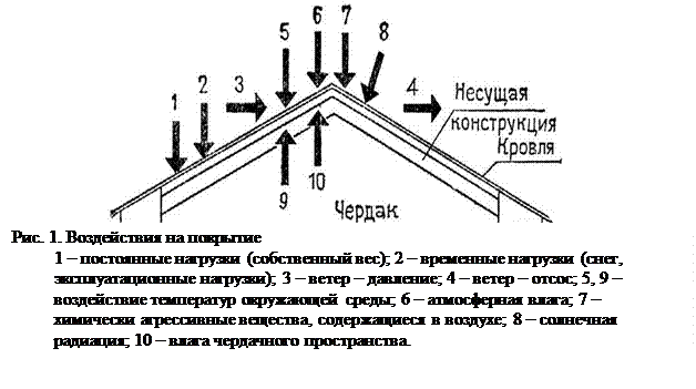 Покрытие защищает помещение от атмосферных осадков и наружных температур (положительных и отрицательных). Воздействие на покрытие представлено на рис. 1.