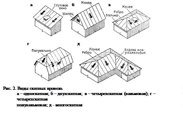 Типы покрытий: чердачные скатные с уклоном кровли более 10º, чердачные с малым уклоном кровли (1° ¸ 10°), бесчердачные раздельные вентилируемые и невентилируемые, бесчердачные совмещенные вентилируемые и невентилируемые.