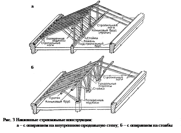 Стропильные системы по конструктивной схеме делятся на три вида: наслонные, висячие, комбинированные, рис. 2.