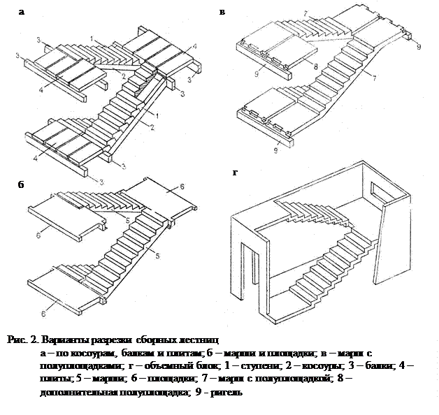 Варианты разрезки сборных лестниц представлены на рис. 2.