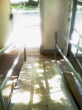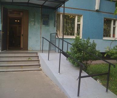 Виды пандусов: одномаршевые, 2-х-маршевые, прямые и криволинейные (из монолитного желзобетона). Пол пандуса должен иметь нескользкую поверхность. Ограждения высотой 0,9 м.