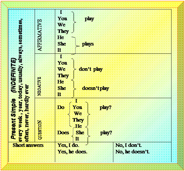 Обстоятельства времени, указывающие на группу Simple: Always, every day, often, usually, sometimes, last week, year, yesterday, tomorrow, next week, next month
