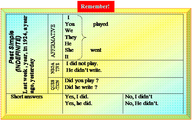 Обстоятельства времени, указывающие на группу Simple: last week, last year, yesterday, two years ago.