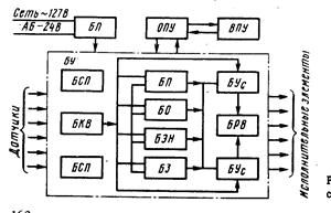 Основной ОПУ и выносной ВПУ пульты управления, размещенные соответственно в непосредственной близости с ДГ и в ЦПУ, состоят из органов управления и сигнальных табло, причем в меньшем объеме у ВПУ. В блок управления входят следующие функциональные блоки: стабилизированного питания БСП ( 2 шт .), контроля времени БКВ, пуска БП, остановки БО, аварийных защит БЗ, неотключаемых элементов БЭН, усилителей БУс (2 шт.) и выходных реле БРВ.
