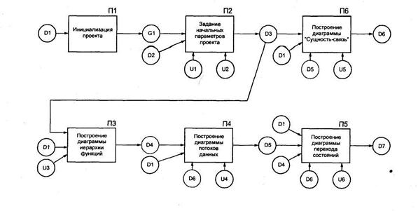 проекта; D 4 - диаграмма функций проекта; D 5 - диаграмма потоков данных; D 6 - диаграмма «сущность-связь»;