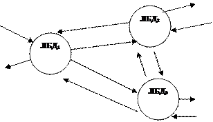 3) ЦБД разбивается на пересекающиеся подмножества. При этом имеется избыточность информации. Такая структура более надежна, обладает средними затратами по сравнению с 1-м и 2-м способом. На практике используется наиболее часто. Основной проблемой такой структуры является необходимость надежной синхронизации ЛБД.