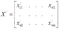 состоящие соответственно из столбцов Xj (j = 1,..., n) и строк Xk´ (k =l,…, n). В силу равенства (4.9) будем иметь: