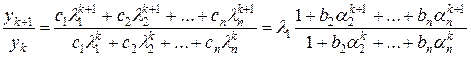 yk=c1λ1k+c2λ2k+…+cnλnk, (5.3)